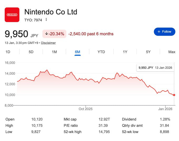 Ранее инвесторы уже распродавали акции и снижали котировки Nintendo в медленном преддверии eventual раскрытия Switch 2, только для того чтобы цены затем взлетели вверх после анонса консоли. Многие ожидают крупную презентацию Nintendo Direct в феврале, наряду с подтверждённой трансляцией Third-Party Direct 5 февраля, и любые значимые анонсы могут быстро вернуть цену акций к прежним уровням или даже выше, в зависимости от реакции фанатов и скорректированных прогнозов прибыли.