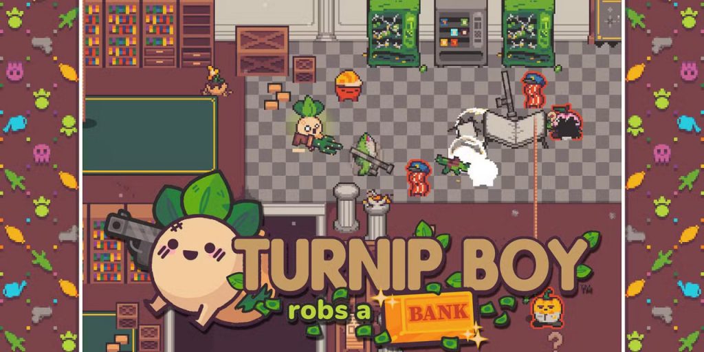 До начала мартовской раздачи 12 марта Epic Games Store предлагает забрать ещё одну игру — Turnip Boy Robs a Bank от студии Snoozy Kazoo. Это прямое продолжение Turnip Boy Commits Tax Evasion 2021 года: если оригинал был приключенческим экшеном, то сиквел представляет собой рогалик-шутер с видом сверху. По сюжету неугомонный мальчик-репа вступает в банду Pickled Gang, чтобы ограбить Ботанический банк — причём раз за разом, в полном соответствии с жанровыми традициями.