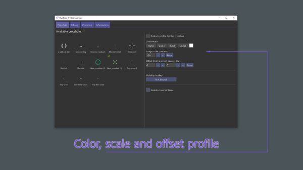 Добавьте свой прицел в любую игру! Вы можете использовать прицел из набора предустановленных изображений, создать свой собственный в нашем встроенном редакторе или генераторе прицелов, или выбрать один из прицелов, созданных нашим сообществом.